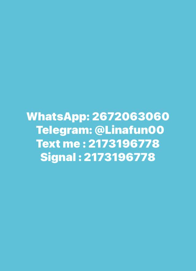 WhatsApp: 2672063060 Telegram : @Linafun00 Text me : 2173196778 ( I’m available fela dm me real quick I will worship your l